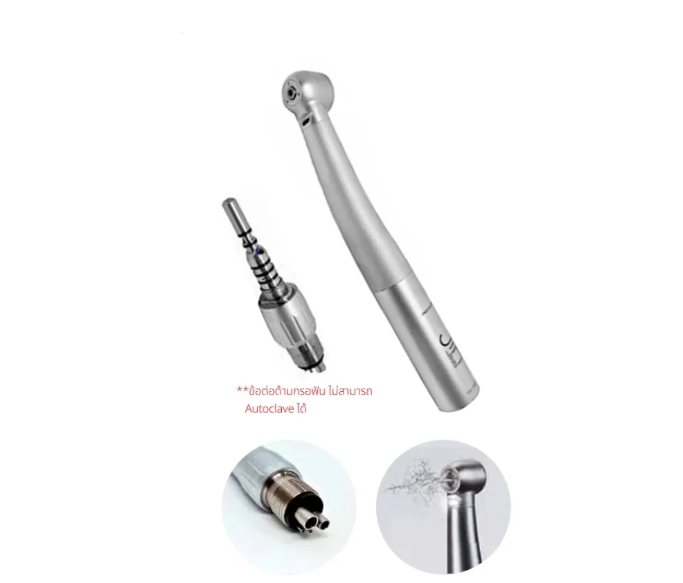 - ข้อต่อด้ามกรอฟันเป็นชนิด Quick Joint coupling หมุนรอบ ตัวได้ 360 องศา ด้านท้ายเป็นชนิด 4 รู สามารถถอด หรือใส่ด้ามกรอเข้ากับยูนิตทำฟันได้ง่าย