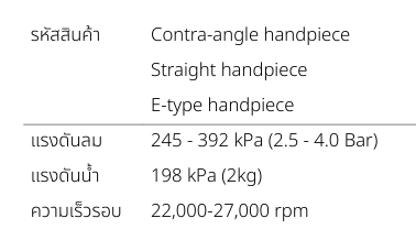 - ใช้ได้กับด้ามต่อชนิดตรง (Straight), ชนิดหักมุม (Contra Angle) และสำหรับขัดฟัน (Prophy Handpiece)
