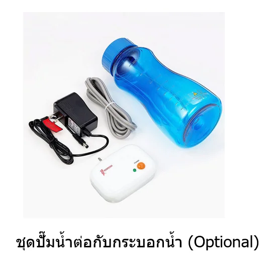 - ในกรณีใช้ต่อกับกระบอกน้ำ (Optional) ต้องต่อสายน้ำจากกระบอกน้ำเข้ากับปั๊มน้ำก่อนต่อเข้าเครื่องขูดหินปูน (ชุดปั๊มลม+กระบอกน้ำ สามารถสั่งซื้อได้เพิ่มเติม)